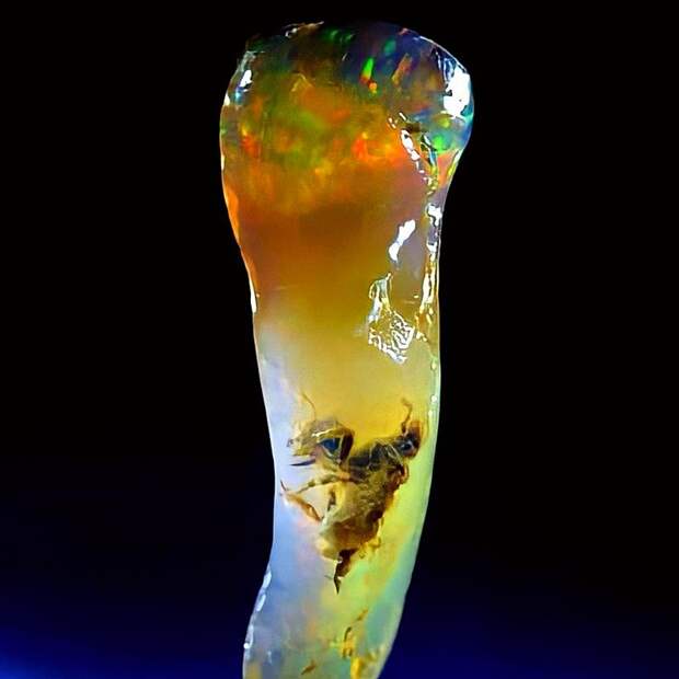 Исключительно редкий пример окаменелого насекомого, сохранившегося в опале. Найден на Яве в Индонезии. Считается, что ему от 4 до 7 миллионов лет.
